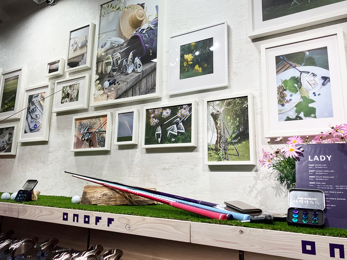 ブースの随所には生花や芝生、流木などを散りばめ、自然とゴルフクラブの調和を表現。実際に製品を手に取りながら、ブランドのテーマも感じられるとして、来場されたお客様より好評をいただきました。