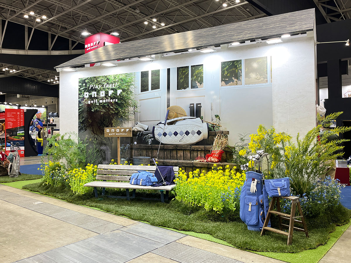 当社ブースでは「スコットランドの豊かな自然に溶け込む、大人の女性が暮らすガーデンハウス。」をコンセプトとしたセットに、メンズ・レディースそれぞれの最新クラブやバッグ・小物などを展示いたしました。