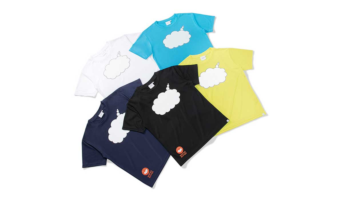 エコマーク認定を受けた使用済み漁網由来のリサイクルポリエステル生地を採用した環境配慮型のオリジナルTシャツです。Tシャツの胸元には大きな吹き出しのイラストをプリントしており、イベント参加者が「○○のアシタ」の目標を油性ペンで自由に書き込めるデザインとなっております。