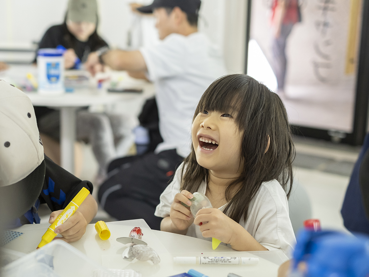 後半は、子どもたちの創造力が自在に発揮されるワークショップ「ルアーペイント」を開催。ルアーとは、魚が捕食する小魚や甲殻類などに似せた疑似餌で、世界中の釣り人が関心を寄せる代表的な釣具のひとつです。