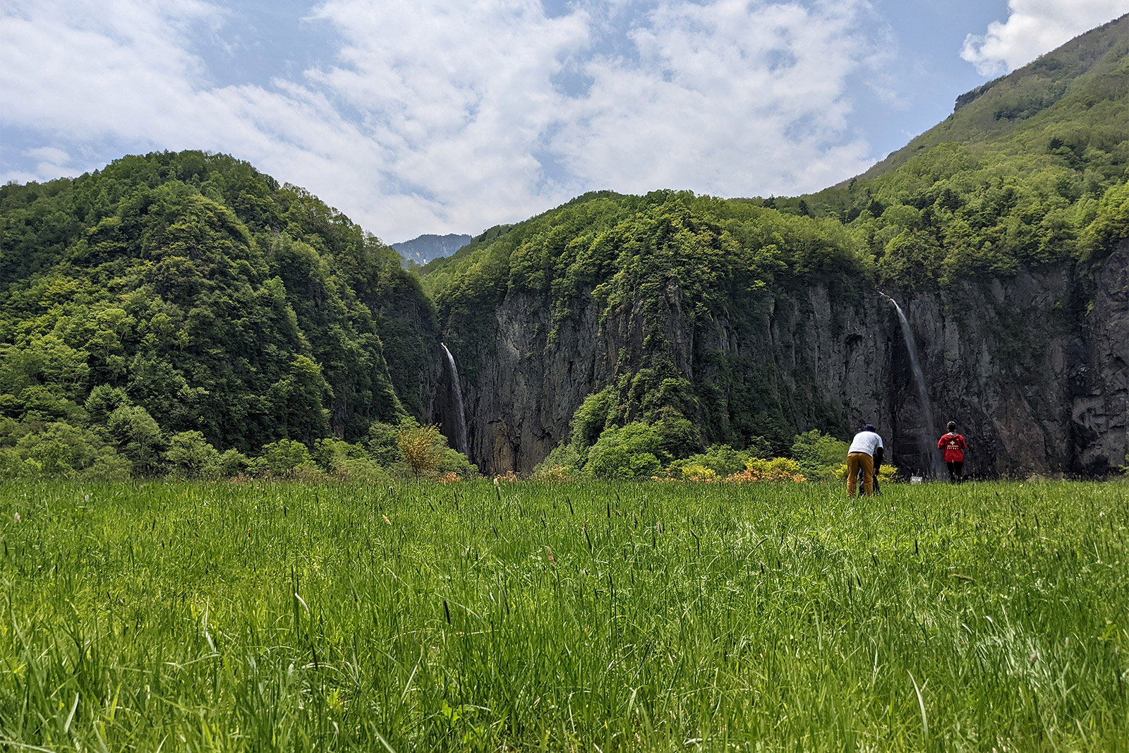 仁礼会が取り組み始めたもう一つの活動は、古道の復活だ。須坂市には米子に不動寺があり、その先12キロメートルほど歩くと、日本三大瀑布の一つといわれる「米子大瀑布」があり、直線的に落ちる2つの滝、「不動滝」と「権現滝」が並ぶ。この滝の麓に奥之院が建立されており(とび地境内)、仁礼会では仁礼地区の大笹街道・大谷不動から米子不動奥の院までの古道を整備し、自然と歴史を楽しんでもらいながら山を歩いてもらおうと考えている。