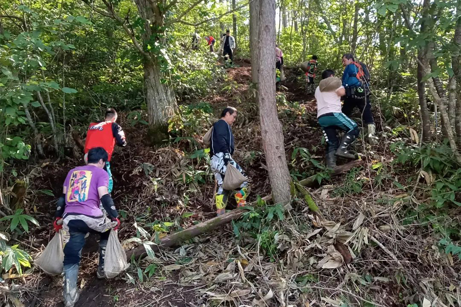 「仁礼会の役割は、山や森を手入れしてバイクが安全に走れるように整備をすること。エンデューロのフリーライドという競技の運営側と長野県や須坂市とをつなぎ、調整役となること。エンデューロはナンバープレートのないバイクを使いますから、警察ともやり取りをします。隣接の須坂市・井上地区等の山林もコースになっていますから、その地域の山林所有者にも協力をお願いします。参加者の家族や仲間も楽しめるように、須坂市観光協会、峰の原観光協会と一緒に観光ツアーを考えたりもします。エンデューロに参加する人も見る人も、皆んなに楽しんでもらいたいですからね。嬉しいのは、運営を担当する人たちと参加者の若者たちが山林の草刈りなどを手伝ってくれることです。彼らは、山と共存したいと言ってくれます。きちんと管理された山や森があってのエンデューロだということを彼らもわかっているんです」