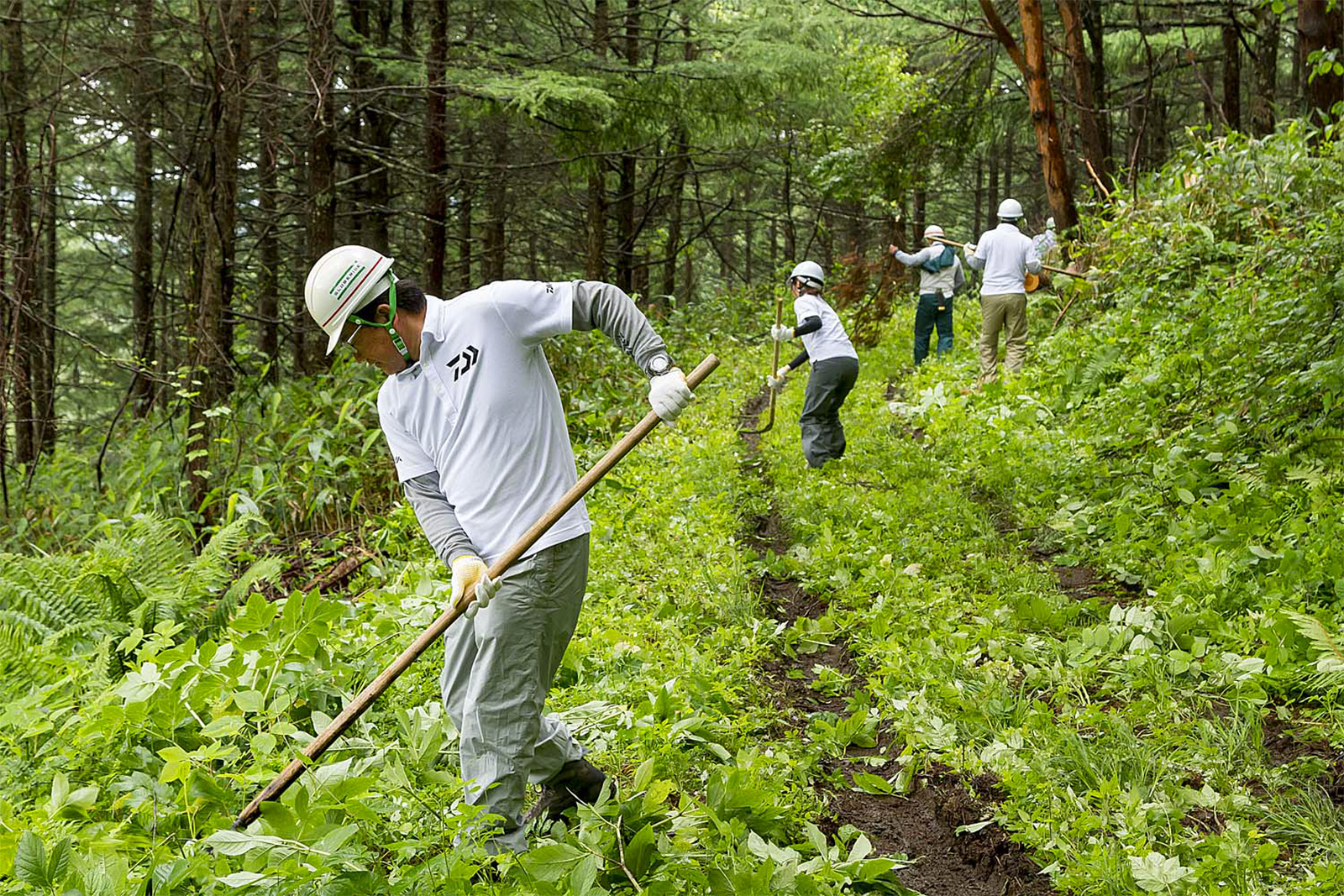 グローブライドでは長野県の森林里親制度により、2005年から須坂市仁礼地区の森づくりに協力している。その山林を維持管理するのは一般財団法人仁礼会。山林に対する先進的な考え方は広く知られているが、森と水を守るための彼らが始めた新たな取り組みに、今、注目が集まっている。理事長の若林武雄さんにお話をうかがった。