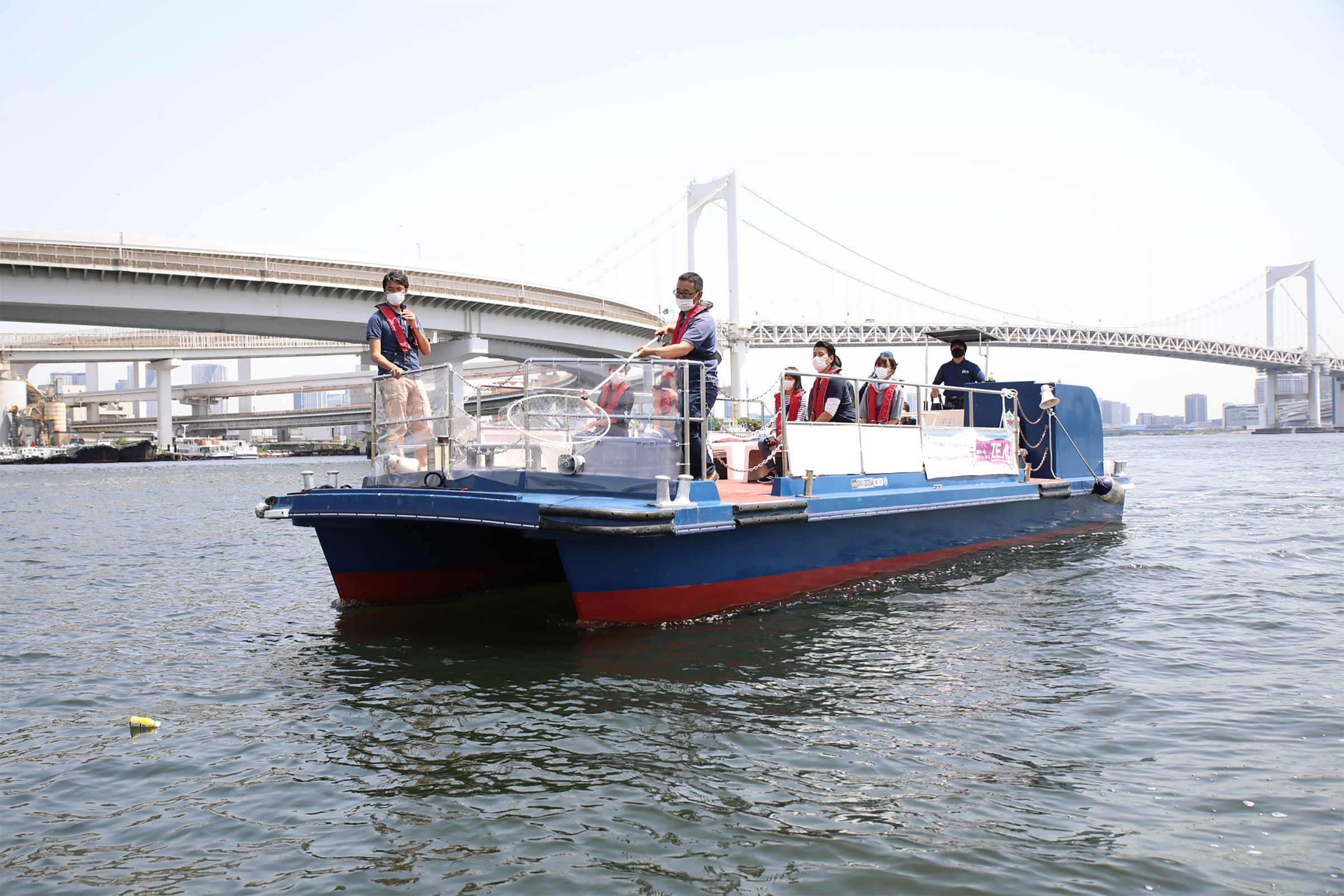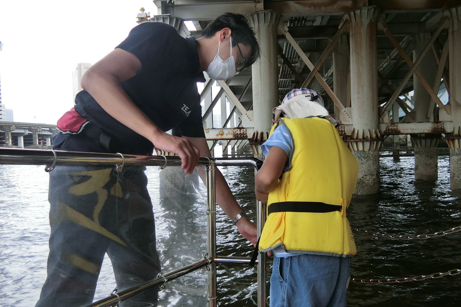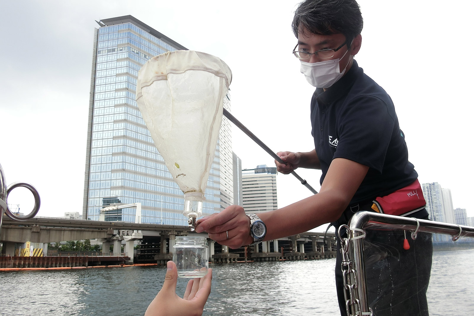 - 平野氏(ZEAL)「TOKYO Sea School」は、海洋プラスチック問題や自然環境への影響を学ぶために、浮遊ゴミ回収や水質調査をしながら、東京湾と周辺河川をクルーズするというものです。ただし環境問題だけに注目するのではなく、水中の生きものや渡り鳥の観察など、東京湾と周辺の水辺の楽しさ、素晴らしさも伝えることを心がけています。船に乗って海や河川から陸を眺めると、いつもと違う発見があります。クルーズを楽しみながら東京の海や河川について学び、「水圏環境リテラシー」を高めてもらいたいと思っています。「TOKYO Sea School」が、子どもたちが東京湾に興味をもつきっかけとなって、海や河川の未来を真剣に考えるようになってくれたら嬉しいですね」