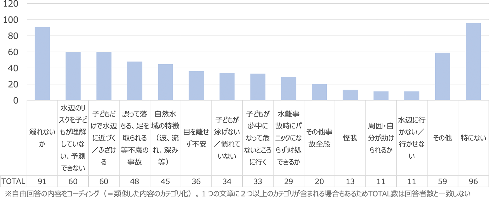 子どもの水辺の活動時に不安を感じること(自由記入)