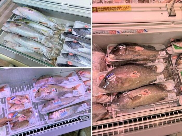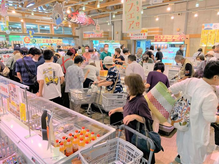 鮮魚コーナーが売り場の1/3ぐらいをしめていて、近くで水揚げされた新鮮な海産物が毎日届くんです。最も多くの点数が並ぶのは午前中なので、開店前からお客さんが並んでいました。