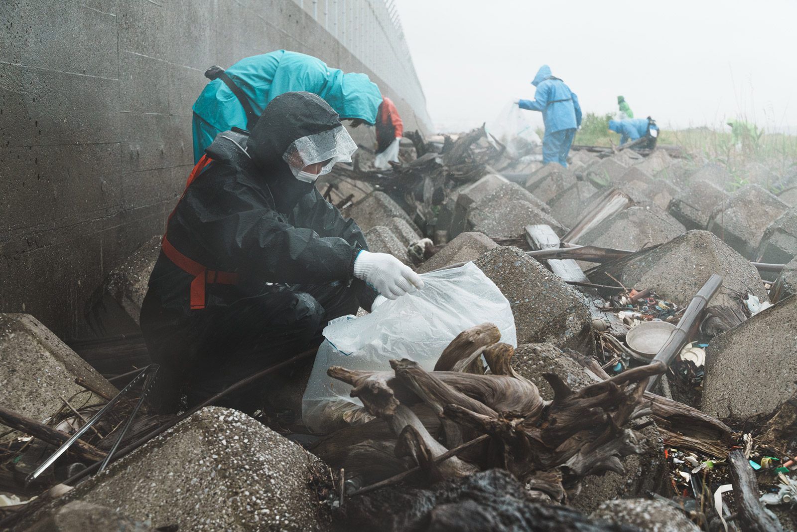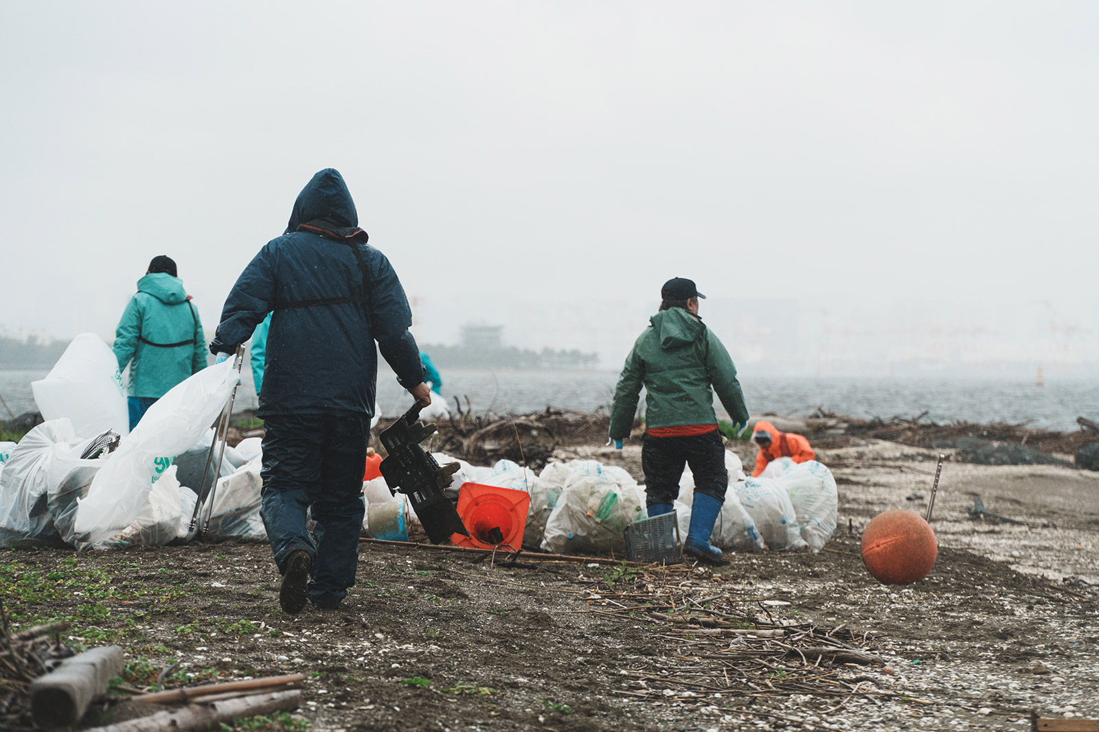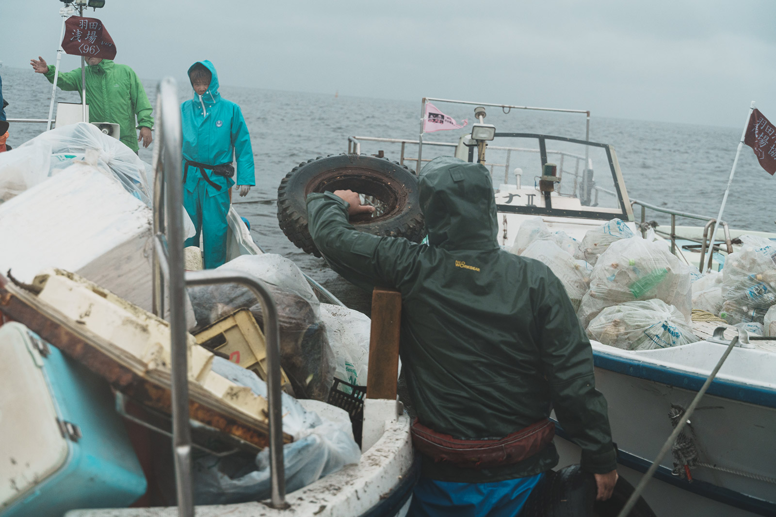 昨年に続いて今年も、羽田空港東側に人工的に造成した羽田沖浅場で漂着したゴミを拾う東京湾に暮らす男たちの姿があった。