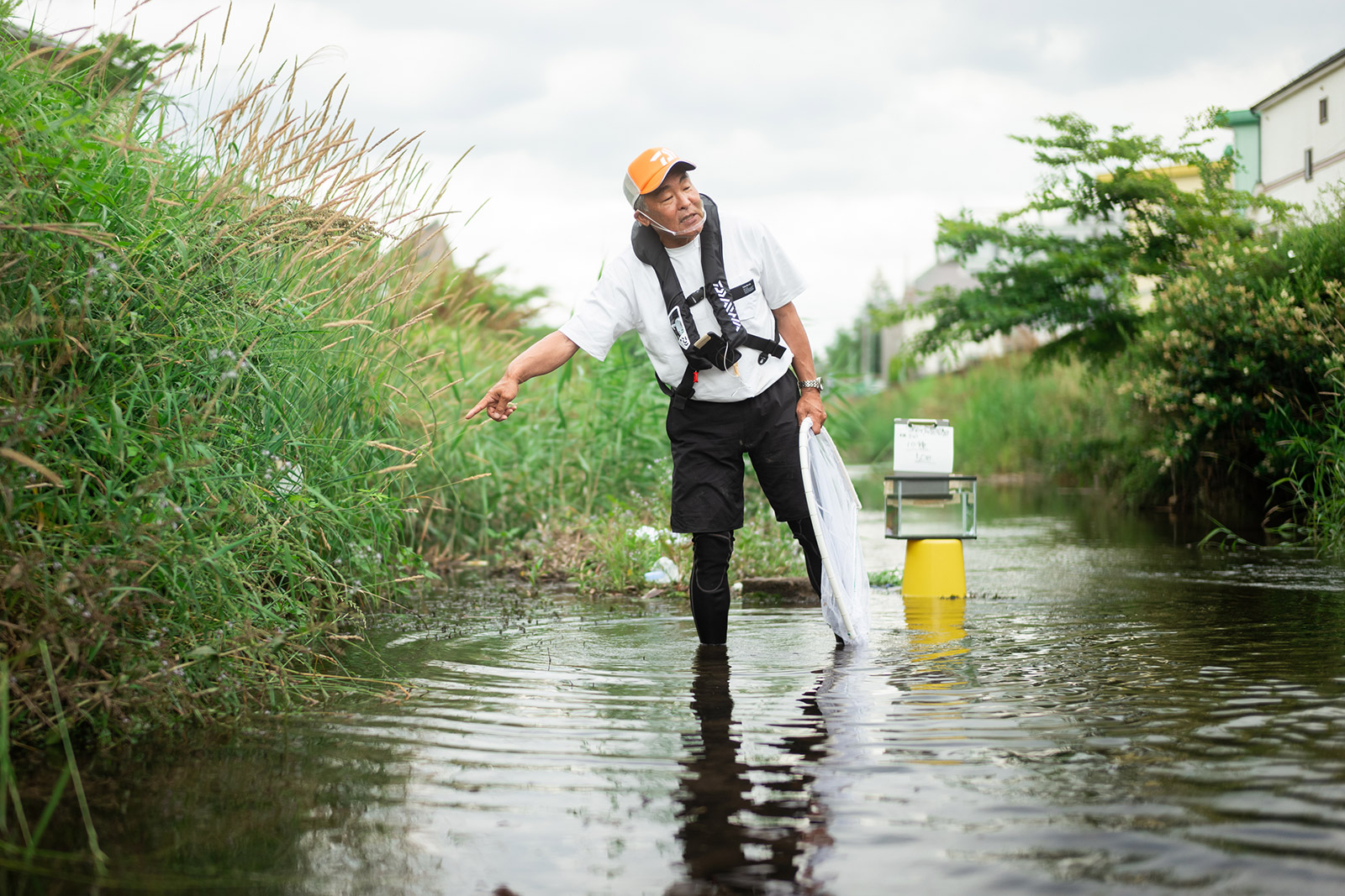体験した誰もが夢中になる川の中に棲む生き物たちを採る「ガサガサ」。多摩川流域におよそ40年暮らし続け、 東京を代表する河川・多摩川の自然観察をライフワークにしている俳優の中本賢さんは、水際の草が生い茂っているところの川遊び「ガサガサ」の第一人者!