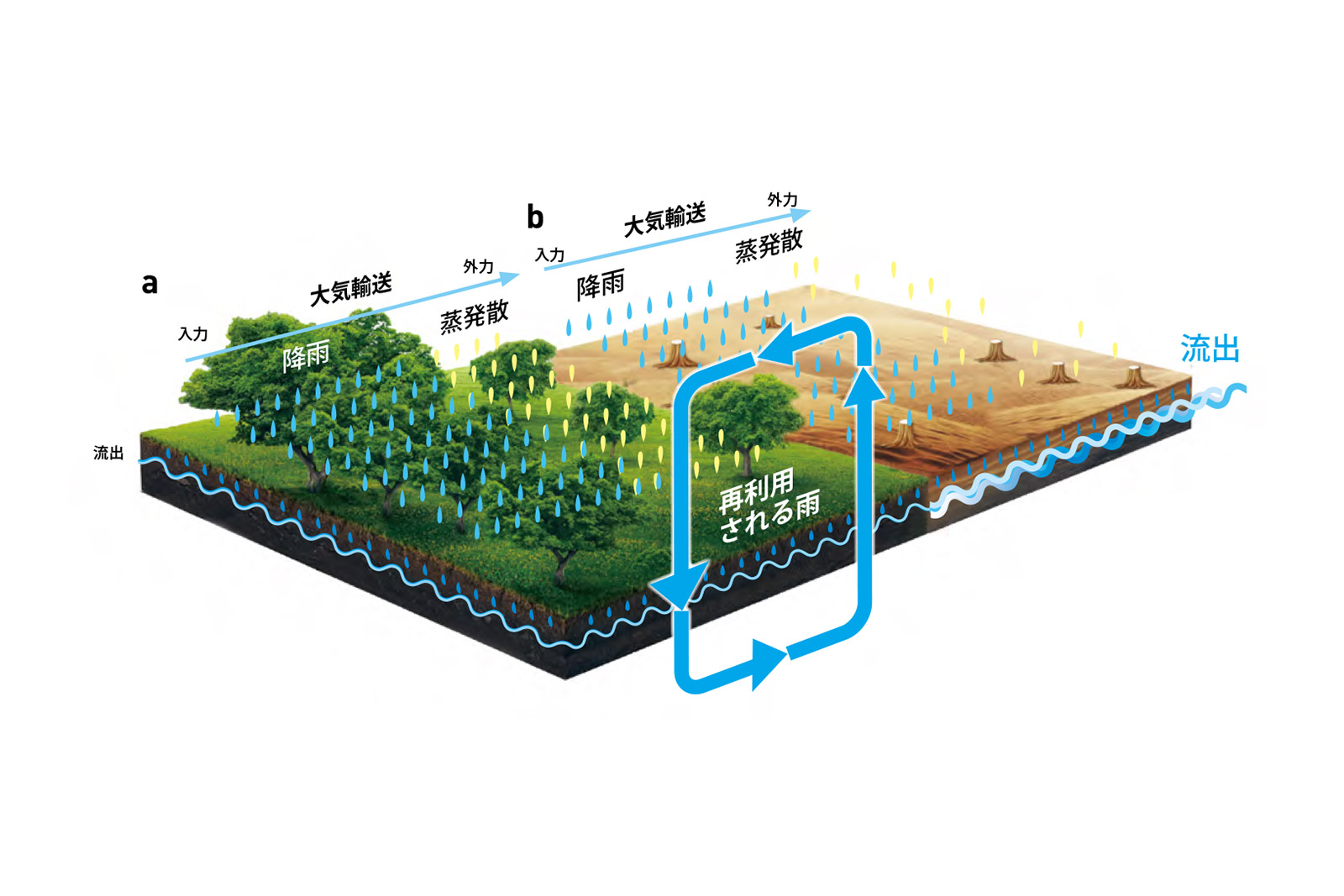 森に降った雨の半分が樹木の『蒸発散』によって大気中に戻るというのは驚きだ。森林は二酸化炭素を吸収し温暖化を抑制するだけでなく、水や大気に関しても大きな役割を担っていることがわかる。