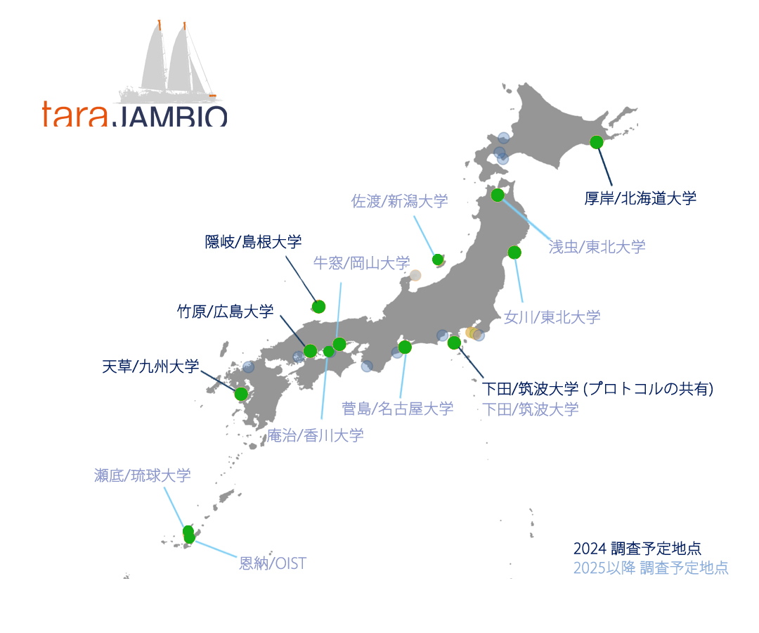 2024年から日本で始まる「Tara JAMBIOブルーカーボンプロジェクト(参照 *)」は、海洋に特化したフランスの公益財団法人タラオセアンの日本支部であるタラオセアンジャパンと日本の国立大学の臨海実験所のネットワークである「マリンバイオ共同推進機構(JAMBO)」が共同で実施し、日本各地に点在する臨界実験所を拠点に、約4年をかけて13カ所以上で調査研究が行われる。