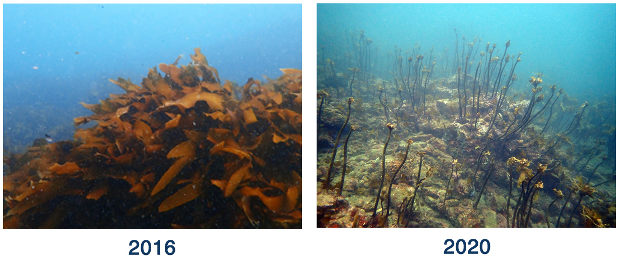 2020年 磯焼けが進行し、コンブ類のカジメ群落が僅か数年で激減してしまった現状。