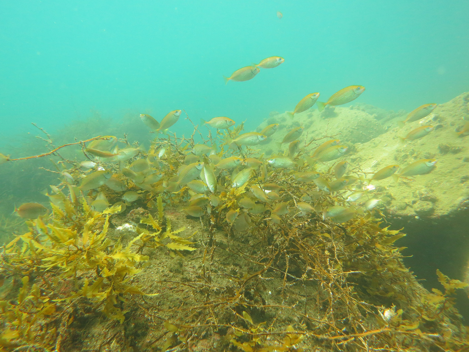 アイゴなどの草食魚による磯焼けは日本の海にとって大きな問題だ(海中のアイゴの様子)。