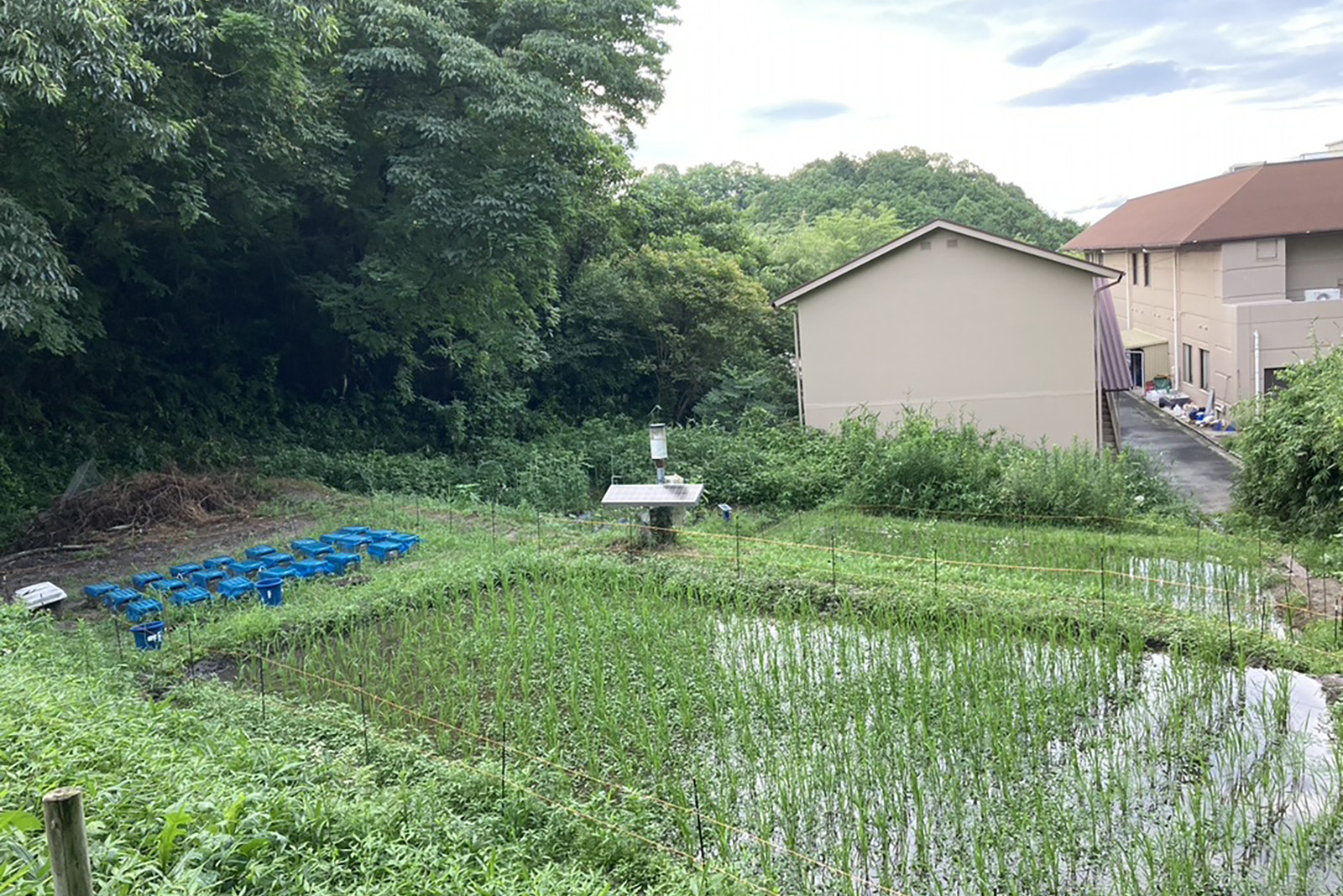 参考※)北川さんの研究チームが管理する里山ビオトープは近畿大学奈良キャンパス内の他に、奈良市高樋町にもある。高樋町では地主の協力を得て、里山環境を整備し作物を栽培している。
