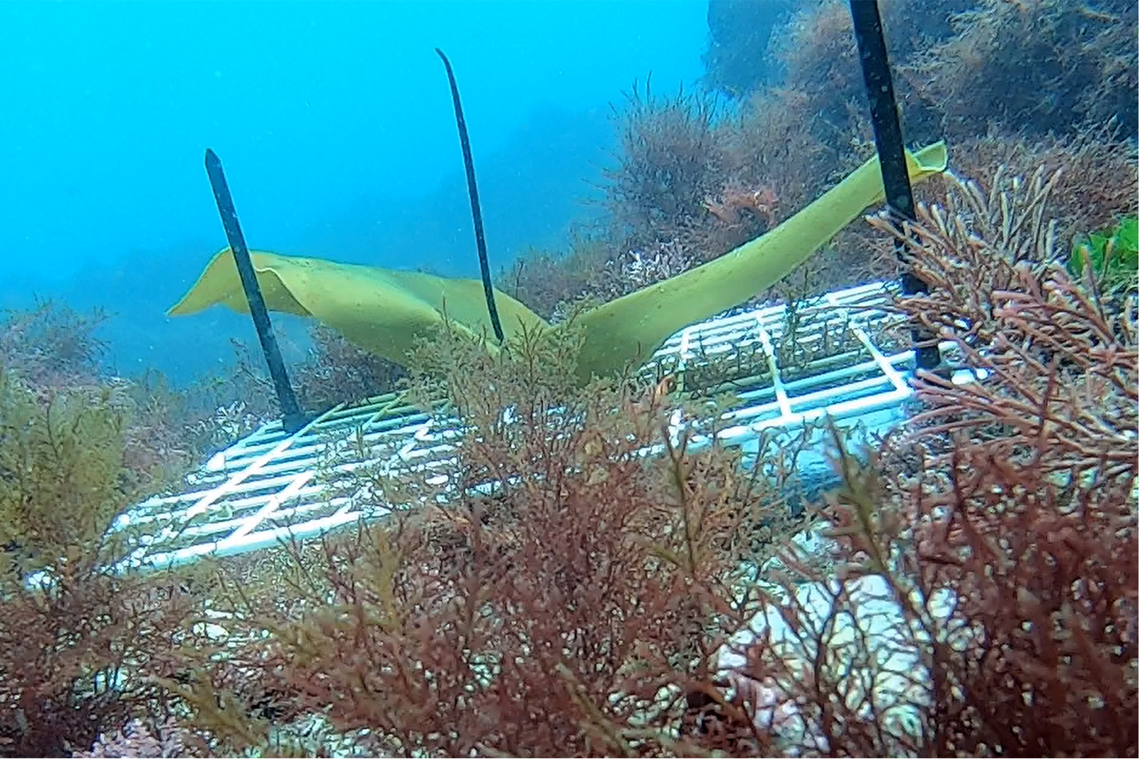 草食魚による食害調査。調査用に仕掛けた昆布を捕食する様子を観察する。
