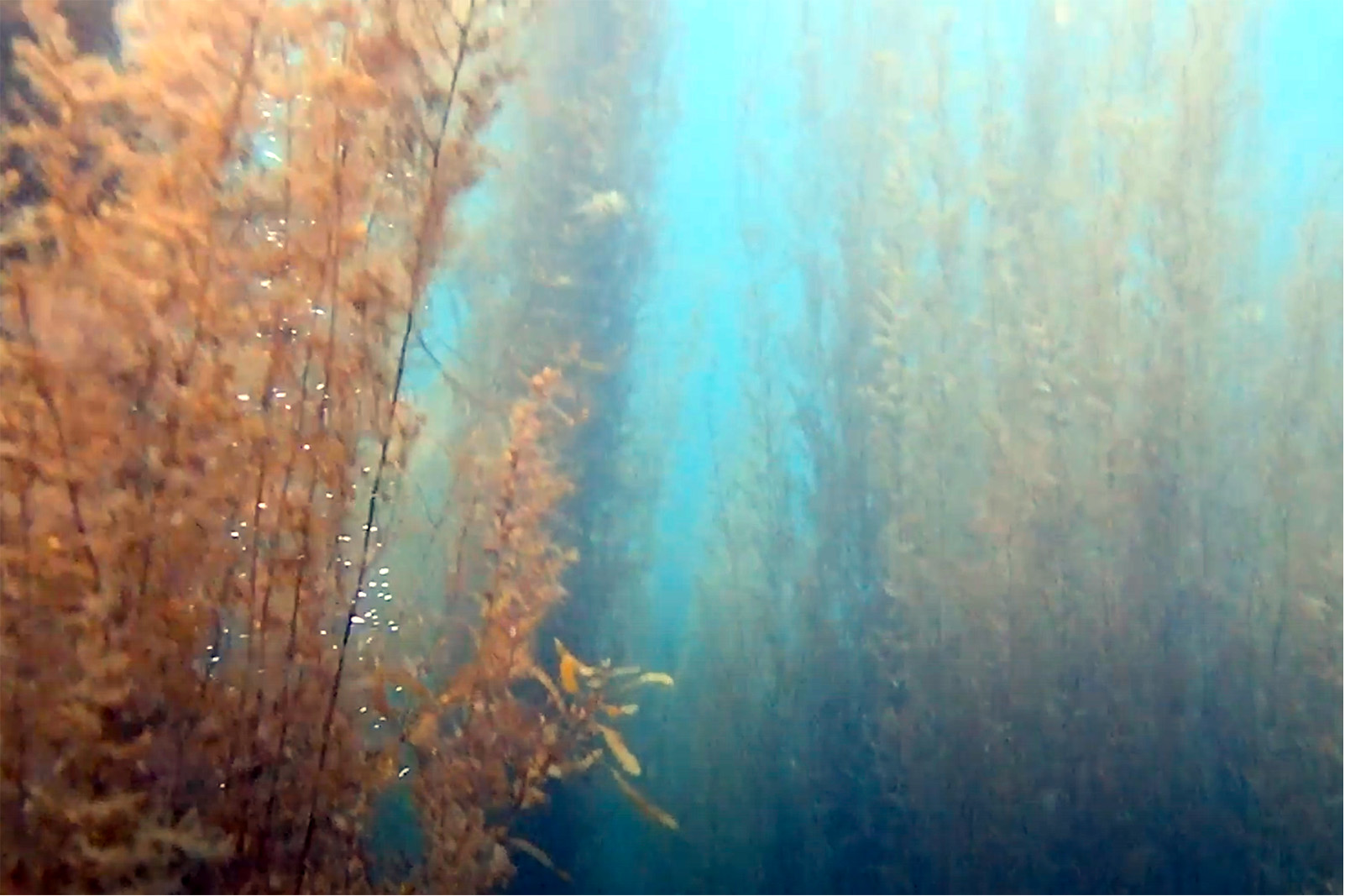 ※2:ホンダワラ類の海藻が優占している藻場。ホンダワラ類は多数の気泡をまとうことで、海底から海面に向けて直立して生育する。ちなみに、アマモが生育している藻場のことはアマモ場と言う。