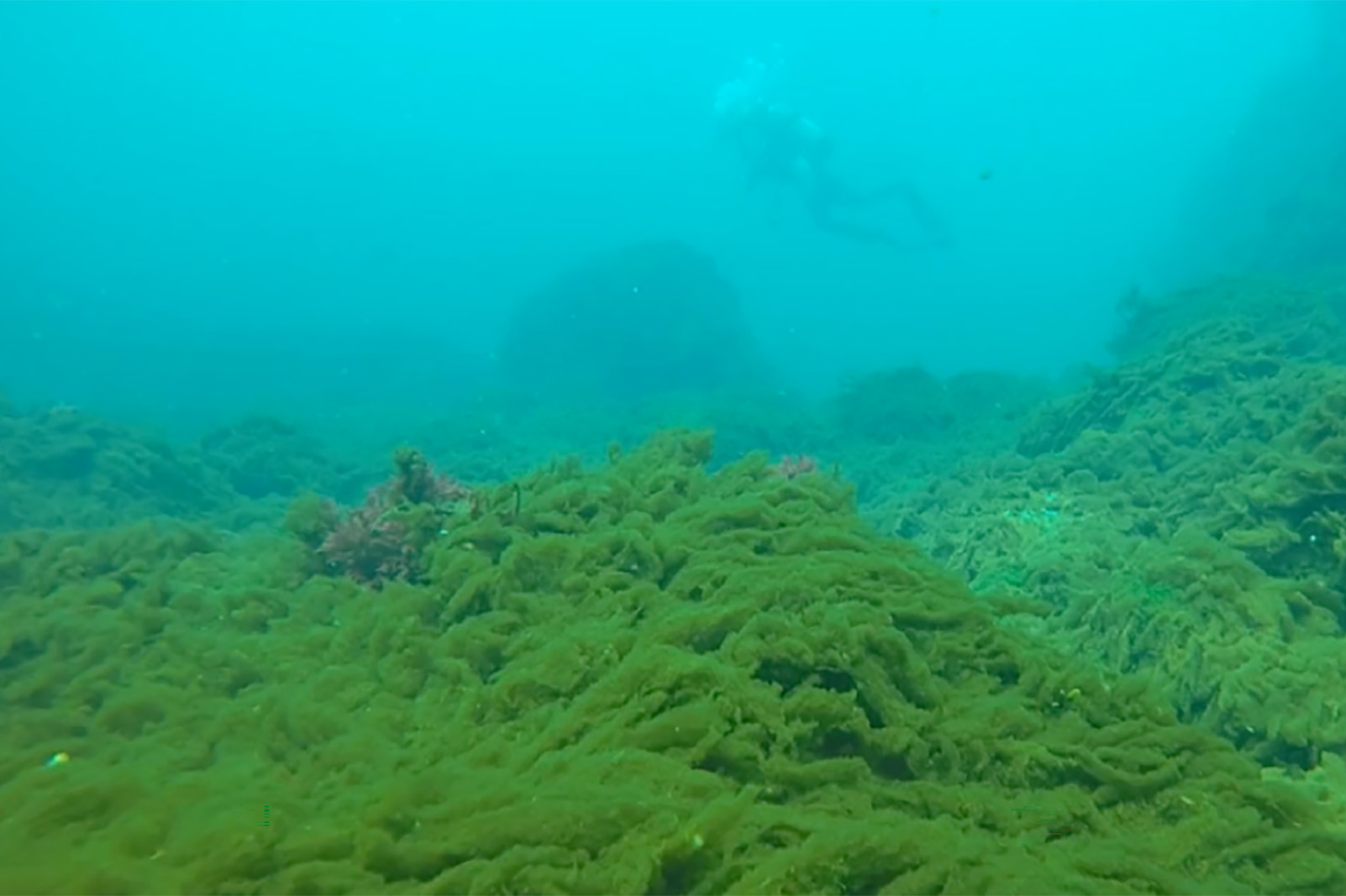 これまで伊豆諸島の式根島など世界各地で調査されてきたCO2シープの海では、背の低い微細藻類が海底一面に生え広がる傾向があったようだ。二酸化炭素を好む微細藻類が広がる海では、大きな海藻は生えなくなり魚種も少なく、多様性のない海と言えるだろう。