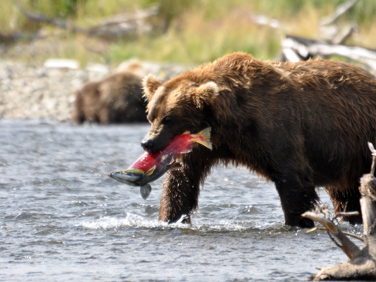 「サケがもたらす海由来の窒素やリンなどは、クマなどのさまざまな生物を通して陸域へと運ばれていきます。サケが遡上する河川近くの生態系は、河川から離れた陸域生態系と比較してはるかに高い生産力があり、それはサケの遡上によりもたらされているのです」