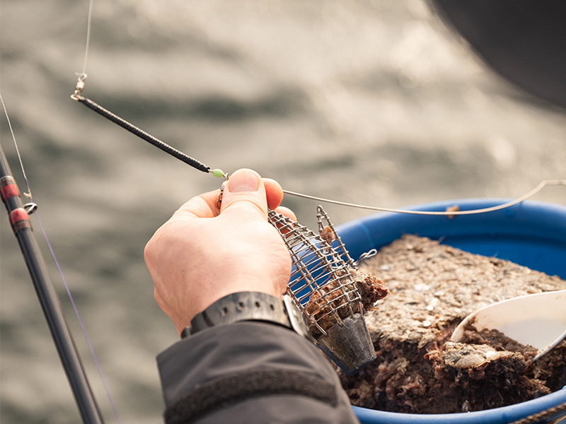 この日のお目当てはアジ。慣れた手つきでビシカゴにコマセを仕掛けていく。