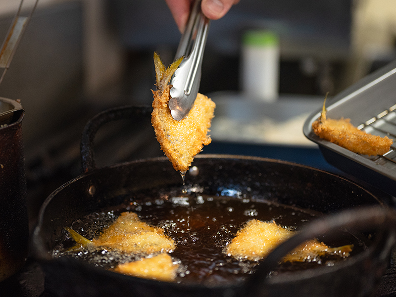 「船の上や港で、未利用魚・低利用魚はどうすればおいしくなるかを漁師さんとずっと話していますね。あとは、全国北から南まで見た時にどこの土地でも食べない魚ってあんまりないんです。ここでは食べないけど別の地域では大喜びされる魚もいる。そういった地域の食文化を調べて、別の土地の人に合うアレンジに落とし込んでいく。実際に食べてみると美味しい未利用魚・低利用魚を活用することで、海と向き合う漁師さんたちのリアルを伝えられるのも、うちの魅力だと思っています。」