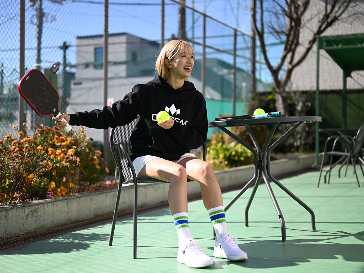 「ピックルボールはテニスよりもコートが小さいので、仲間や相手との距離が近いんです。大声を出さなくても声が聞こえるので、試合しながら普通に話が楽しめます。この前は、隣でピックルボールをしていた人たちと自然に一緒にプレーする流れになって。その人たちと話しているなかで、お互い同じアイドルが好きなことがわかって、試合中も休憩中もずっとライブの話をしていました。」