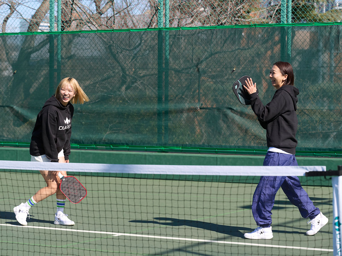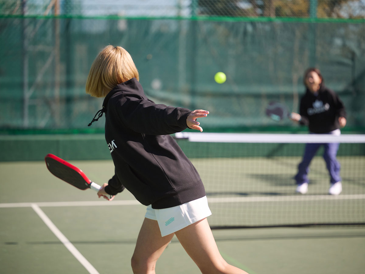 「同級生が『運動不足だからテニスしよう』と誘ってきた時には、まずはピックルボールがいいんじゃない?と提案しちゃいます。最初からテニスコートのサイズは辛いし、経験者同士じゃないと試合にならないこともあるのですが、ピックルボールはその場にいる誰もが楽しめるのがいいんです。勝ち負け関わらず、ただその時間を楽しみたい気持ちが大きいと思います。」