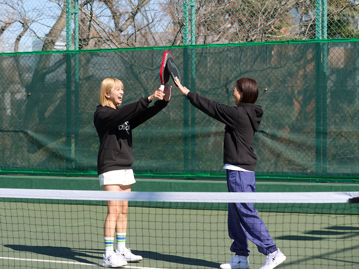 「自分の番が回って来たら、初対面でもそれぞれラケットを取って同じコートでゲームをするんだそうです。だからソロでも気軽にプレーできるし、知らない人同士のコミュニケーションも自然に生まれるみたいで。色んな年齢層の人が楽しめるのがいいですよね。」