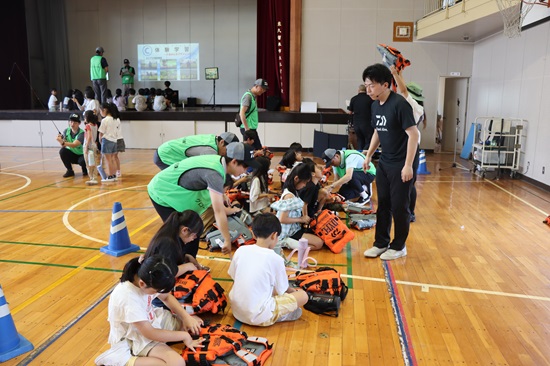6月21日(土)、東久留米市立本村小学校にて小学生を対象とした「釣り環境学習<座学編>」を開催しました。本格的な夏を前に、水辺で遊ぶ際の注意ポイントや川の特性などを学習し、釣りに関する体験もしていただきました。