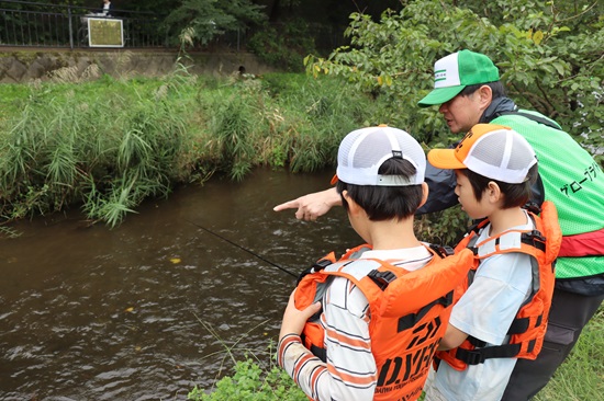 10月9日(木)、6月に開催した「釣り環境学習<座学編>」の参加者を対象に、今度は実際の川でガサガサや釣りを体験していただきました。地元に流れる落合川の豊かな自然を肌で実感するとともに、普段味わうことのできない体験に、子どもたちは目を輝かせながら夢中で取り組んでいました。