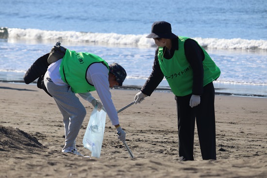 小春日和となった江ノ島・片瀬海岸での清掃活動。これまで各種団体が清掃活動を行っている場所でもあり、一見ゴミはないように思える風光明媚なロケーションでしたが、30分ほどの活動で釣り竿を含めた大小さまざまなゴミを回収しました。